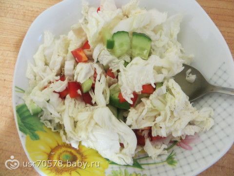 обед — жидкое суп или борщ. (фото нет)ужин — пробовала твой салат. супер. а в этом положила огурец и перец болгарский и заправила соком лимона. тоже хорошо.