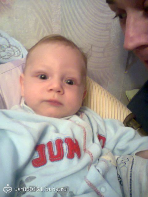 Вчера моему сыночку исполнилось 5 месяцев!!! Он у нас уже такой большой!!! Что мы умеем........., да ничего мы не умеем! Переворачиваться нам лень!!!Пытается ползти, но еще не понимает, для чего нужны при этом ручки! Берет сам игрушечки, рассматривает их и тянет в рот! Слюни ручьем, но грызиков еще нет! Конечно разговаривает с нами, ооочень любит папу, с него он глаз не сводит!!! Вот так! Вчера ходили по магазинам, накупили сыночку подарков! Шапочки, носочки, игрушечки для купания, а бабушка его подарила фитбол. Сёмушке понравилось на нем кататься. Сегодня еще делали прививки, посмотрим, как перенесет, надеюсь, что хорошо! И вот мое счастье!!!
