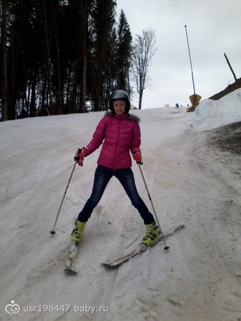 … во второй день я уже поехала сама с больших горок… кататься было норм… но подьемники это жесть(((… начало второго дня… подьезжаю я на подьемнике он меня подталкивает… я лечу… и в голове… либо падай либо влети в дерево и убейся(((… вот так вот я и упала… кстати упала я потому что с предыдущего подьемника тоже упали люди и мне не куда было ехать(((… упала я на руку… было больно((… ну все таки после этого я все равно еще пару часов каталась на лыжах с нескольких больших горок))… было страшно только еще раз упасть на эту же руку(… немного она у меня болела(… а еще был прикол когда на скорости я упала а лижи не остановились)))))).кстати когда мы туда ехали я не планировала кататься думала так с коляской буду гулять на свежем воздухе)))… но приехав все таки решила попробовать)))… и катались по очереди пока малой спал, а спит он на улице долго… я каталась)))