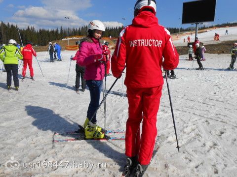 … на следующий день я брала себе инструктора на 2,5 часа и мы учились на маленькой горке… потом сьехали с большой))))… катание на лыжах мне понравилось!