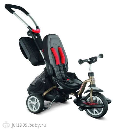 Puky seet S6. Плюсы: Легкий, удобная ручка, деть в возрасте 1,5 доставал уже до педалей и мог чуть-чуть ехать сам, удобная подножка (съемная). Минусы: цена, корзина может соскакивать при съезде/заезде с/на бордюр (решение вопроса: дополнительные дырочки в корзине и прикручиваем чем-либо к раме). У нас в красном цвете.