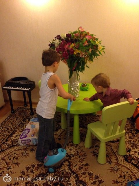 Ооо, забыла про пылесос. Это стоит отдельных слов. Гудит, всасывает мусор (входит в набор). Пошел на ура у обоих сыновей.