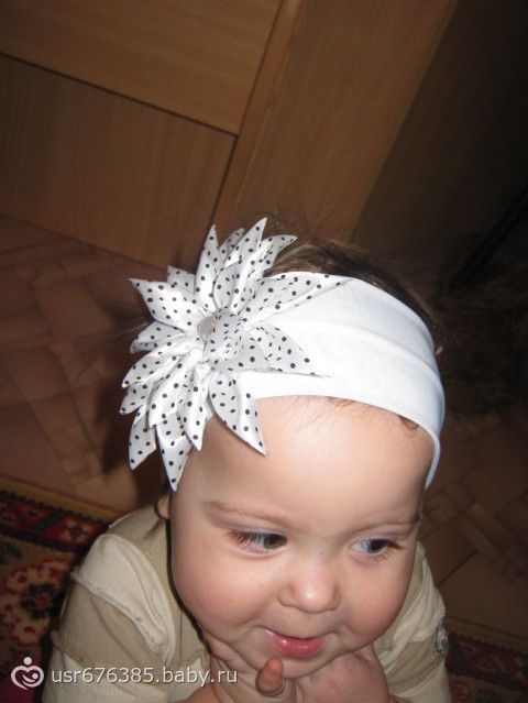 Давно искала повязочки для дочи и нашла! Заказала у Тани Шах (у меня в друзьях есть — ник Блестяшка). Сделала очень быстро и красиво! Мне очень нравится! Теперь ждём тёплой погоды чтобы в них красоваться!)))