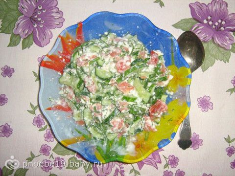 -мой любимый салат(творг, огурчик, помидорчик, укроп, активия)