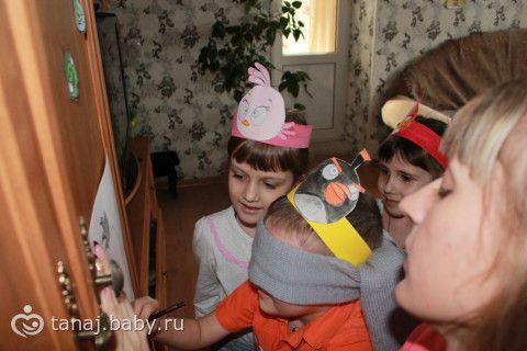 На листе нарисованы силуэты Красной птички и Жёлтой птички. Каждому из участников по очереди завязывают глаза. Нужно дорисовать каждого из персонажей игры Angry Birds, то есть дорисовать недостающие детали. Игроки могут помогать своему товарищу, направляя его подсказками (выше, правее, левее, ниже и т.д.) куда дорисовать ту или иную деталь.