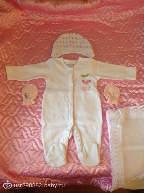 Вот решила разобраться с вещичками для малышки и собрать вещи на выписку. Т.к. частично комплект на выписку нам отдали родственники ( и в комплекте были не все вещи) я решила его немного изменить. ПДР поставили 10 мая, но судя по всему получится немножко раньше. Т.к. в мае погода непредсказуема, может быть и +5 и +20 надо быть готовыми ко всему. Приблизительный списочек вещичек: