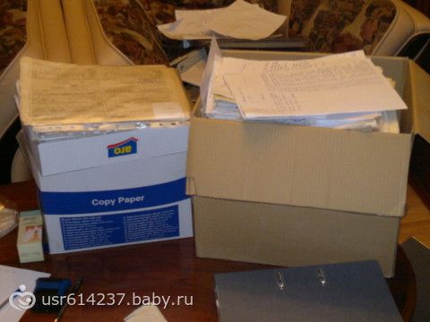 успели до обеда 2 коробки бумаг на выброс приготовить. Детки спать пошли, а я жду грудку из духовки, поем и снова за работу.