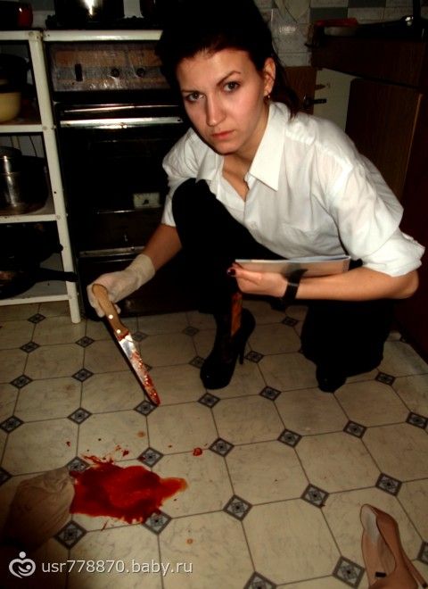 4- Убийство на кухне. Чем не сюжет? Хорошее атмосферное фото. Обстановка, аксессуары — все играет на образ. Сосредоточенный на незримом объекте или пришедшей на ум догадке взгляд говорит о сложной, требующей особых навыков, профессии детектива — следователя. Моя оценка — 5