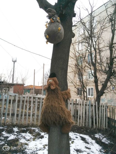 Выгуливали вчера Тимурку и вот на такую инсталяцию набрели :)) Я долго хохотала, ну так прикольно, молодцы!!! Фото с телефона, но вроде бы всё чётко. (обратите внимание на пчёл из киндер-сюрпризных коробочек :))))))))))