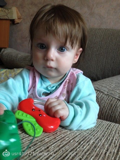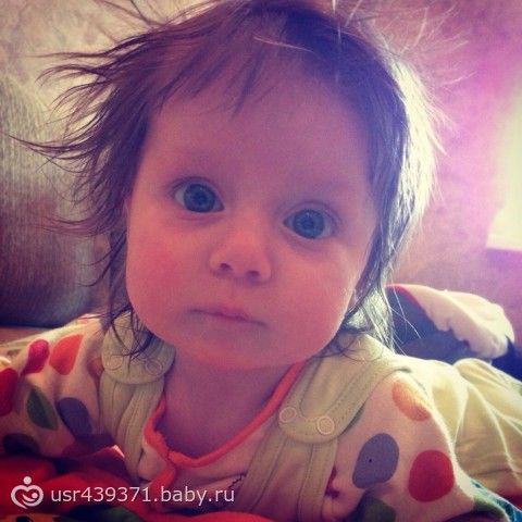 Мы — не девочка, а юла!)) У нас два зубика снизу уже вылезли, и сверху лезут еще две, пока не вылезли)) Кусаем маму)) Постоянно двигаем руками и ногами, крутимся по всей кроватке и дивану) Поворачиваемся на живот, потом обратно, потом так кувырком! Уже неделю пытаемся сесть, поднимаемся аж до половины спины) Скоро видимо сядет сама, я не подсаживаю, не помогаю) Кушаем ох как тяжело, спим ох как плохо днем, Слава Богу, ночью хорошо спим) Вообщем юла) Ну и прическа у нас стала краще и длиней))))) Моя самая любимая на свете юла))) И когда прошли эти 6 месяцев?!)))