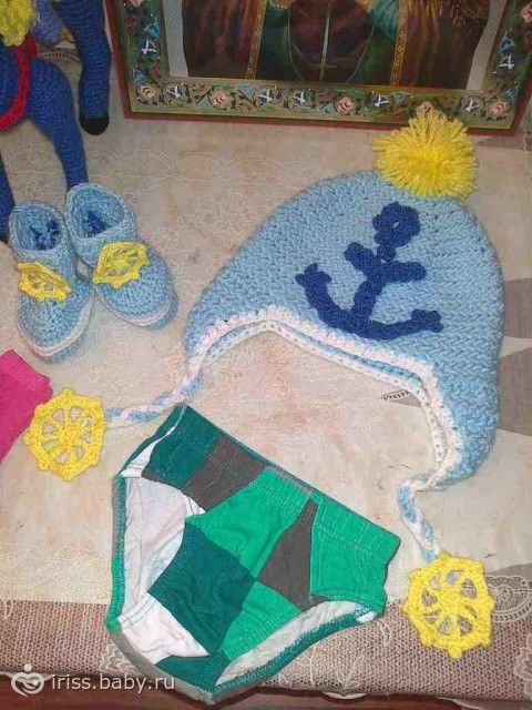 Пинетки немного запорола, но исправлю, на задней стороне якорь вышит, и не догадалась, что изнутри видно будет(((((Но время еще есть)))