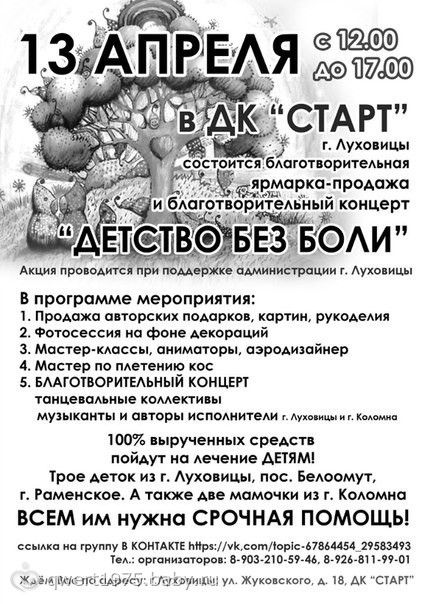 Благотворительная акция! Я там представляю свои работы, 100% благотворительность! Не проходите мимо! Можете также поучаствовать в благотворительной акции, предоставить свои работы или просто посетить мероприятие, приобрести что- нибудь ручной работы, тем самым помочь больным деткам!!!