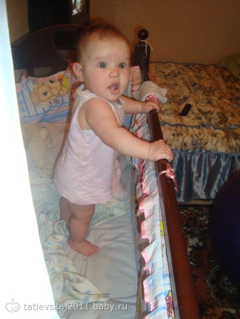 мы тоже сначала поползли, потом на попу сели и сразу в кроватке поднялась)