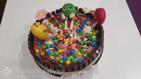 правда, папа наш подкачал — за жо… пил купить большую упаковку M&M's, мол, перебор будет… по-этому не получилось закрыть весь торт ими, а дети только эти конфеты с торта и таскали…