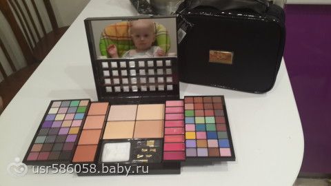 набор косметики с огромной палитрой теней и косметичка…