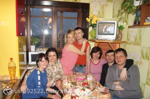 Вот как то так мы посидели, слева на право — две мои подруги, в светлом крестная старшего, в синем жена кума- он справа в сером, в черном справа друг мужа с женой, а лучшая подруга и будущая крестная Илюши фоткает, остальные разбежались ))))))))))))))) Ну а самого виновника покажу чуть поже...........(просто еще не прошло 40-к дней). Да и мы уже немного умеем держать голову))))))