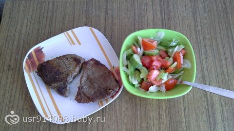 Обед стейк говядина, салат овощной с маслом подсолнечным