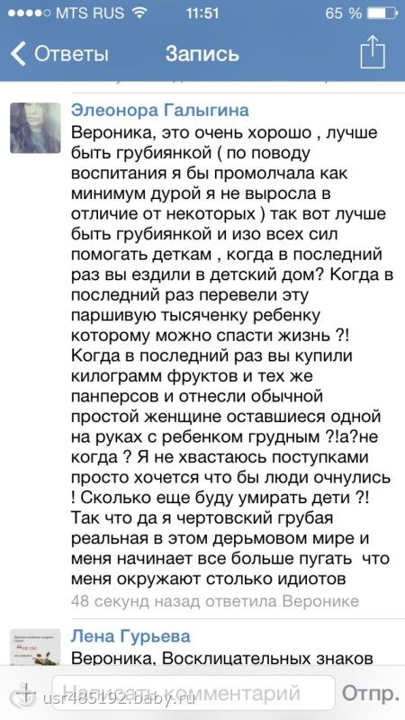 а ты на кой с такими разговариваешь… переубедить и воспитать, и привить человеку сочувствие невозможно в таком возрасте… грубого и озлобленного народа очень много...