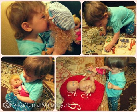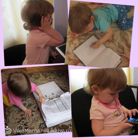 Знаем несколько слов: кроме односложных мама, папа, баба, дядя, ляля и т.д., говорим дом, ать(кровать), аи(аист), деба(юбка почему-то) и ещё немного (всех щас и не вспомню) Показываем всех животных, овощи, фрукты и др. Любим рисовать, складывать разные мозаики, разглядывать книжки, а ещё обожаем танцевать и петь песенки (как-нить выложу видео).С особым интересом крутимся перед зеркалом, примеряем вещички и изучаем мамину косметичку))