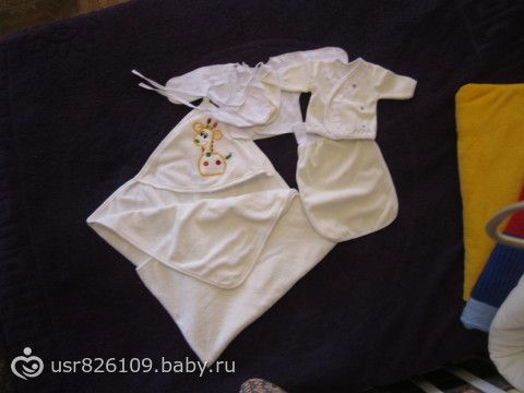 Вот, кстати, одежка на выписку — справа, то, что слева — это полотенце.