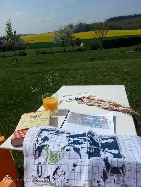 Ну собственно говоря вот) — сок, книга Французские дети не плюются едой" и вышивка))) Вот так вот все выходные на даче)