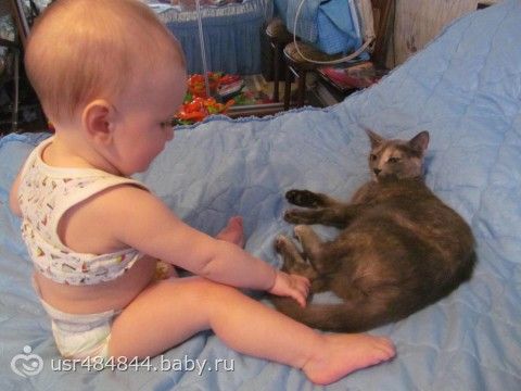 поздравляем вашего карапузика с 9 месяцами! пусть растет здоровеньким и смысленым! тоже любит котяру за хвост тягать?