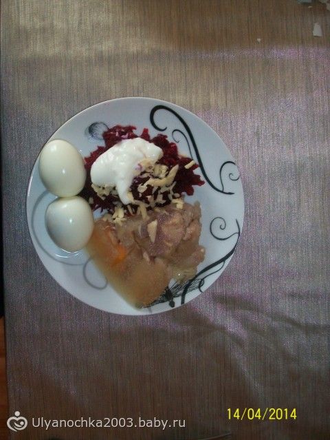 обед: 2 яйца, отварная свекла с сыром и йогуртом, холодец