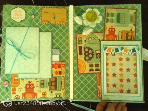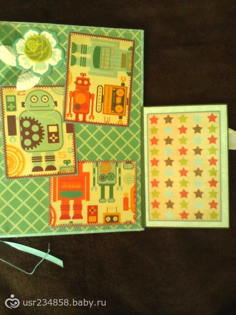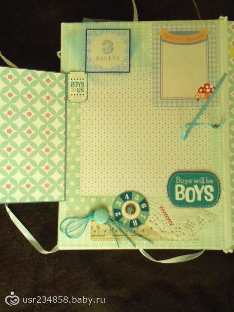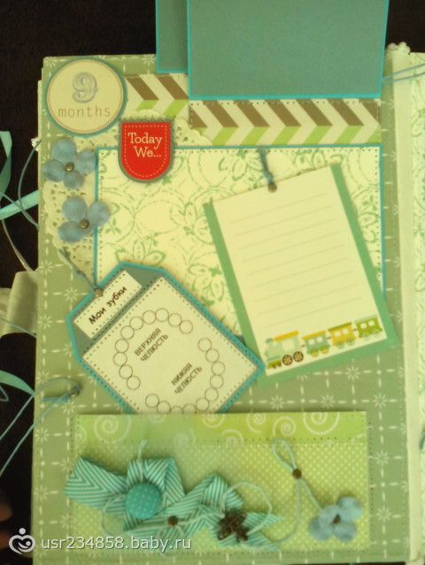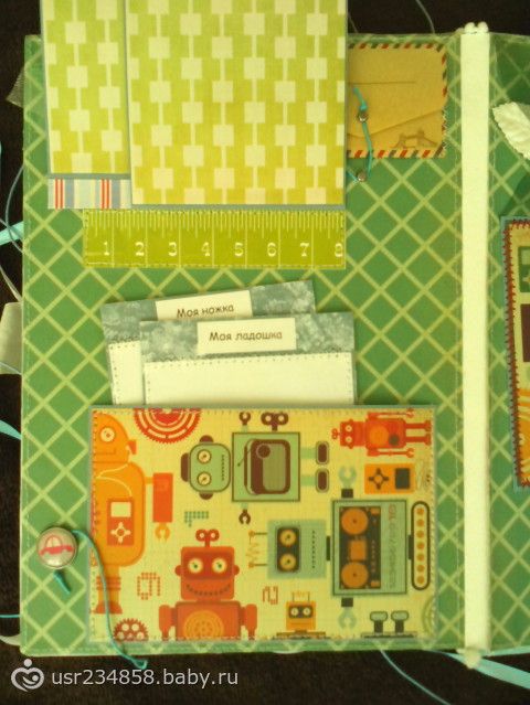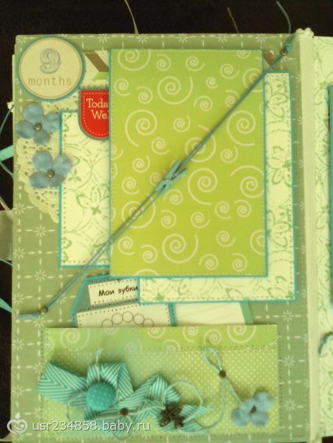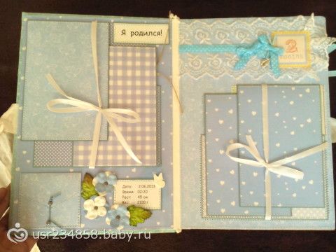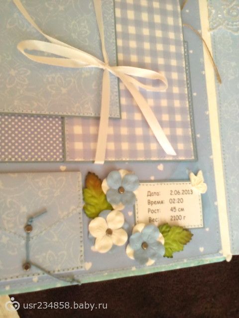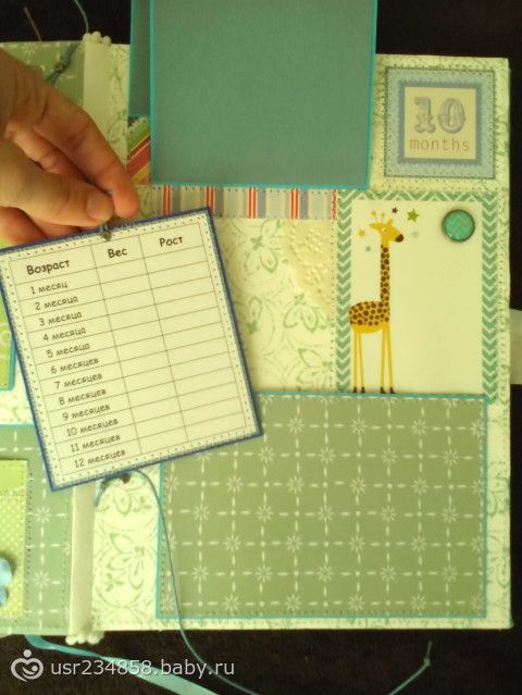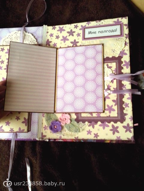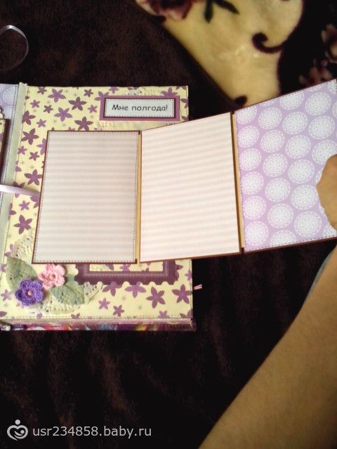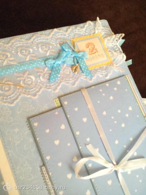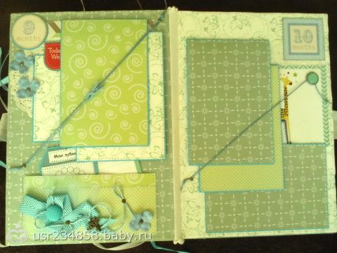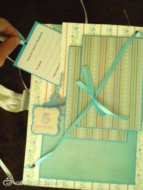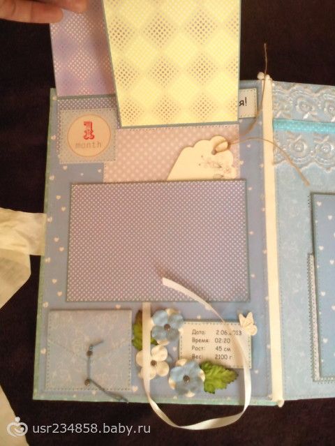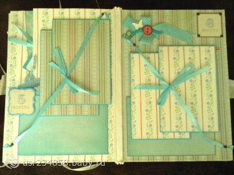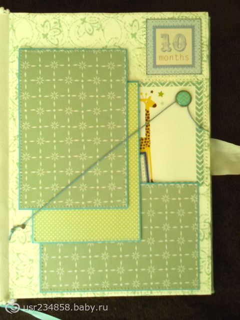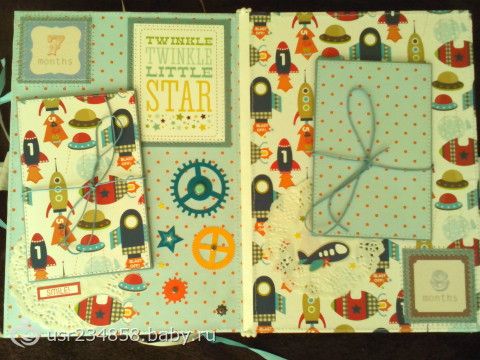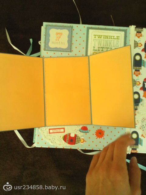 )) Именно на 7 мес пришит цельный лист бумаги… У меня был большой ватман плотной синей бумаги, я вырезала нужный размер и согнула в двух местах, как книжечку… Понимаете? А оранжевая бумага сверху приклеена-пришита.