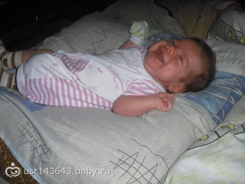 Вот еще маленкая была, а видно что похожая на Маму)))То что малышка в 4 мес стояла у опоры, это прорыв.А за то что сидеть стала позздно, это не страшно, я так полагаяю.Знаком период делаю так как хочу и на руки просится.У нас это до сих пор.