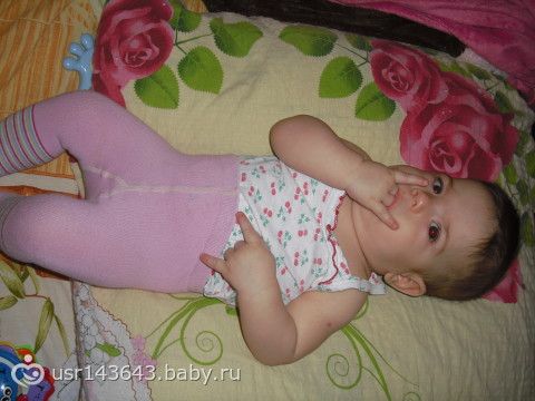 здесь нам 6 месяцев, Пальцы у нас во рту с месяца, с пустышкой не сложилось, много перепробовали, но она нашла себе 2 пальца и их сосет до сих пор(с 1.5 года уже только когда спать хочет, отучили на улице сосать, и во время игры))