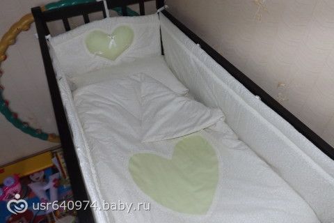 распродажа была. да и комплект не фирменный. минус этого комплекта был в бортиках — они узкие, если опустить дно кроватки = то они только половину закрывают.кольце брал 2 года назад.