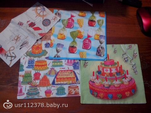 салфетки, верхний слой)) вместо клея и лака — яичный белок) вычитала — попробовала, очень даже удобно))
