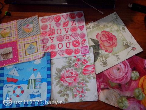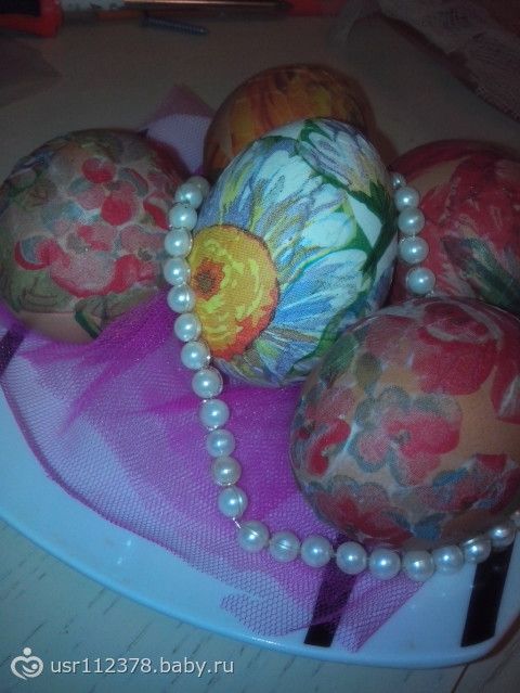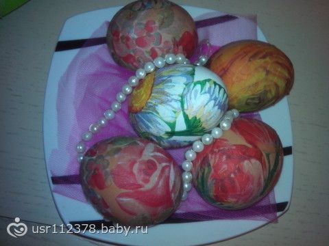 салфетки, верхний слой)) вместо клея и лака — яичный белок) вычитала — попробовала, очень даже удобно))