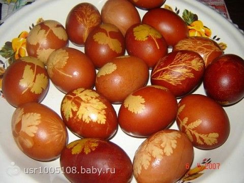 2. яйца луковой шелухой покрась. на не белых ярко выходит.