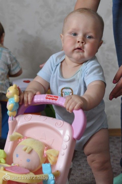 Совсем забыла написать: рост 75 см., вес 11200 гр. Прибавили 900 грамм, потому что начали кушать кашки. Но я не собираюсь их убирать, как сказал врач. Не считаю его толстеньким.