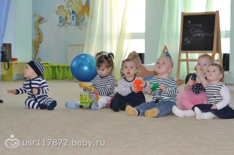 На дне рождении у нашей любимой Дианки (в морском стиле, все детки в тельняшках, Матвей — в колпаке):