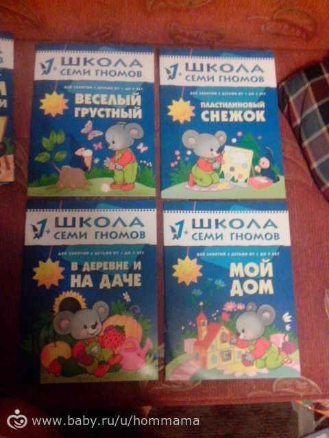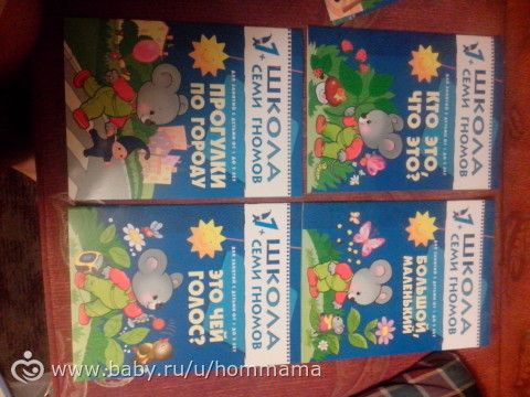 Многие мамы слышали, пользовались курсом развития детей от 0 до 7 лет. Если нет, то кратко расскажу о данной серии. Школа семи гномов — это семь годовых курсов для деток от рождения до школы. В каждый комплект входит 12 книг, если покупать сразу курсом, то в качестве бонуса ваш малыш получает диплом об окончании курса)))