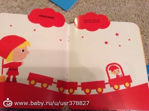 Книжка МОИ ЛЮБИМЫЕ ИГРУШКИ была скорее подспорьем. Даны картинки с игрушками (погремушка, мишка, кукла, машинка). Я отобрала среди наших игрушек все, что есть в книжке и просто показывала сыну игрушки, называла их и описывала: «Кораблик большой, кораблик синего\красного цвета, кораблик гудит, плывет и тд» К году сын быстро находил по просьбе игрушки и соотносил их с карточками.