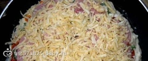 3.Обязательно поверх всех слоев пиццы выложить слой сыра, желательно очень толстый.