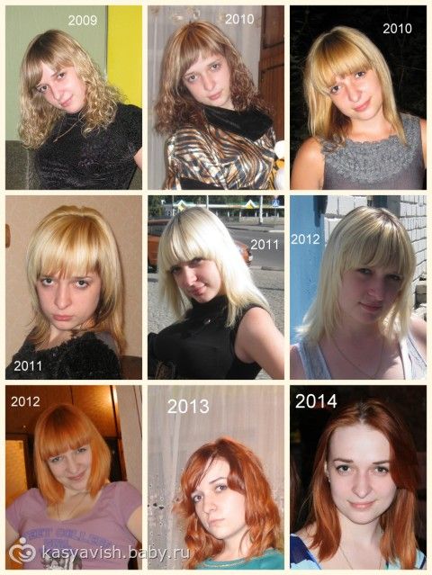 Двигаюсь в обратном направлении)) Ухожу из рыжего в блонд))) Вобще хочу светло-русый)) а так, какой я только не была)) надо будет тоже на досуге сделать коллаж)