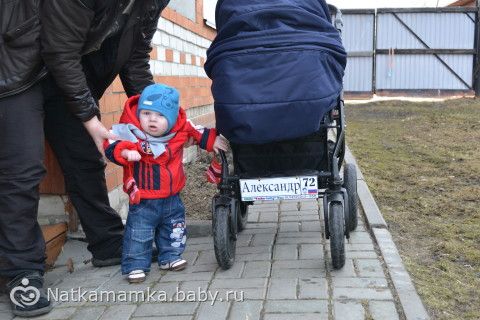папа выдумал! прилепил знак на коляску, Саше видно не нравится! даже попытался его оторвать