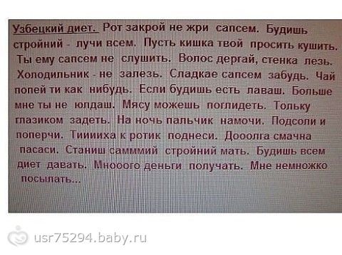 Узбецкая диета...ОЧЕНЬ ЭФФЕКТИВНАЯ!Вс24 апреля 2014 00:14 Всем ХУДЕЮЩИМ!ПОВЕСЬТЕ СЕБЕ НА ХОЛОДИЛЬНИК!