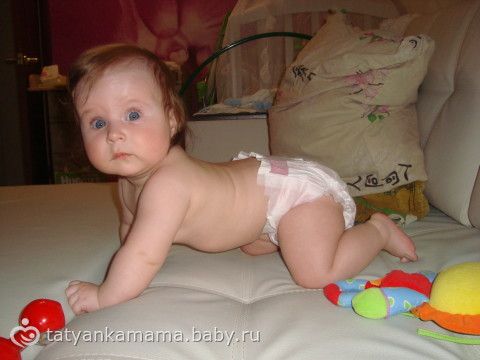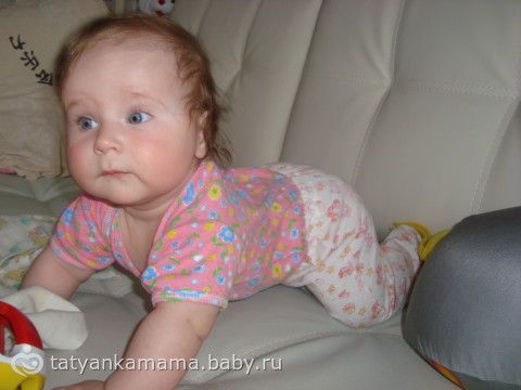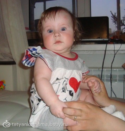 16 апреля Сонечке исполнилось 6 месяцев. Мы кушаем овощи уже все, фруктовые пюрехи не очень любит. Пробовали творожок, кашку… но лучше маминой сиси нет ничего))) Соня ползает, только чаще всего задом, очень активный ребенок. Зубика у нас так 2 и торчат (вылезли в 4,5 месяца). Сами пока не садимся. только подтягиваемся за ручки. А сидеть очень нравится).