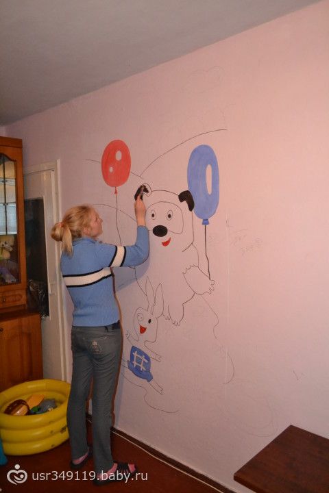 какой большой уже мужчинка!!!)классно стенку росписала, и я так хочу!!!)