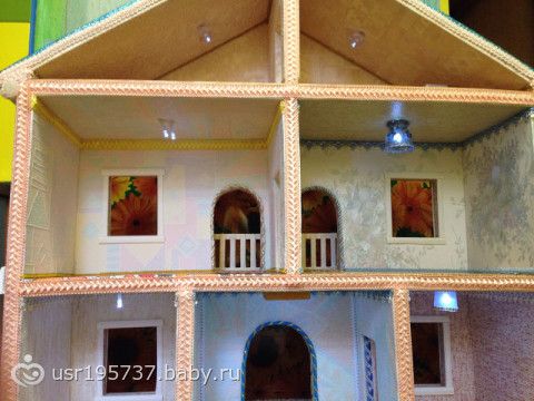Строительство и благоустройство домика очень увлекательное занятие для мамы и дочки. Можно самим делать к примеру люстры из пластиковых бутылок, нитки+клей, бордюрчики из разных тесёмочек, швабры из зубных щеток)))