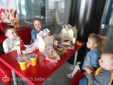 Младшенькому сегодня два годика, пригласили мы двоих подружек сыночкиных и поехали отмечать)))Зашли в Бургер Клаб и там посидели, потом попрыгали на батутах и игровой комнате, а потом домой кушать торт