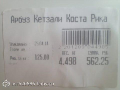 Едем вчера с мужем, увидели магаз какой то странный супермаркет конкретно фруктов и овощей… думали там экзотические фрукты есть может манго, маракуйя… ничего такого, только я увидела там АРБУЗ!!! о котором уже 2 месяца мечтаю… я конечно своему сказала бери этот нитрат и я буду на 7мом небе от счастья, сегодня когда я надумала его разрезать и глянула на цену меня охватил шок и я чуть дар речи не потеряла, прикрепляю фото...
