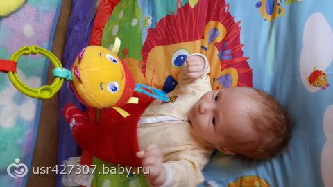 Пока не особо понимает, но лежит разглядывает игрушки)) думаю месяцев с 3 ей будет интереснее на нем.