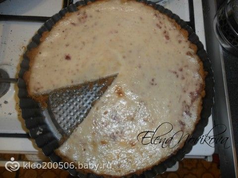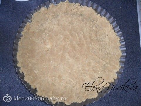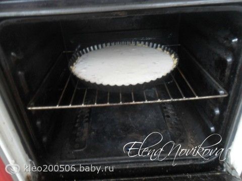 Получившееся тесто выложить в форму для выпекания и сформировать бортики по краям. После как все размяли положите минут на 5 в морозильную камеру. А мы пока займемся начинкой.