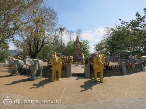 Это место тоже входило в нашу халявную обзорку, поэтому были мы там в 11 утра, а не на закате… Но фото всё равно вышли довольно красивые)) Маяк в это время был закрыт, поэтому мы просто погуляли по смотровой, полюбовались видами, слониками на месте алтаря, постояли под деревом, которое «смывает» грехи, не помню, как оно называется))